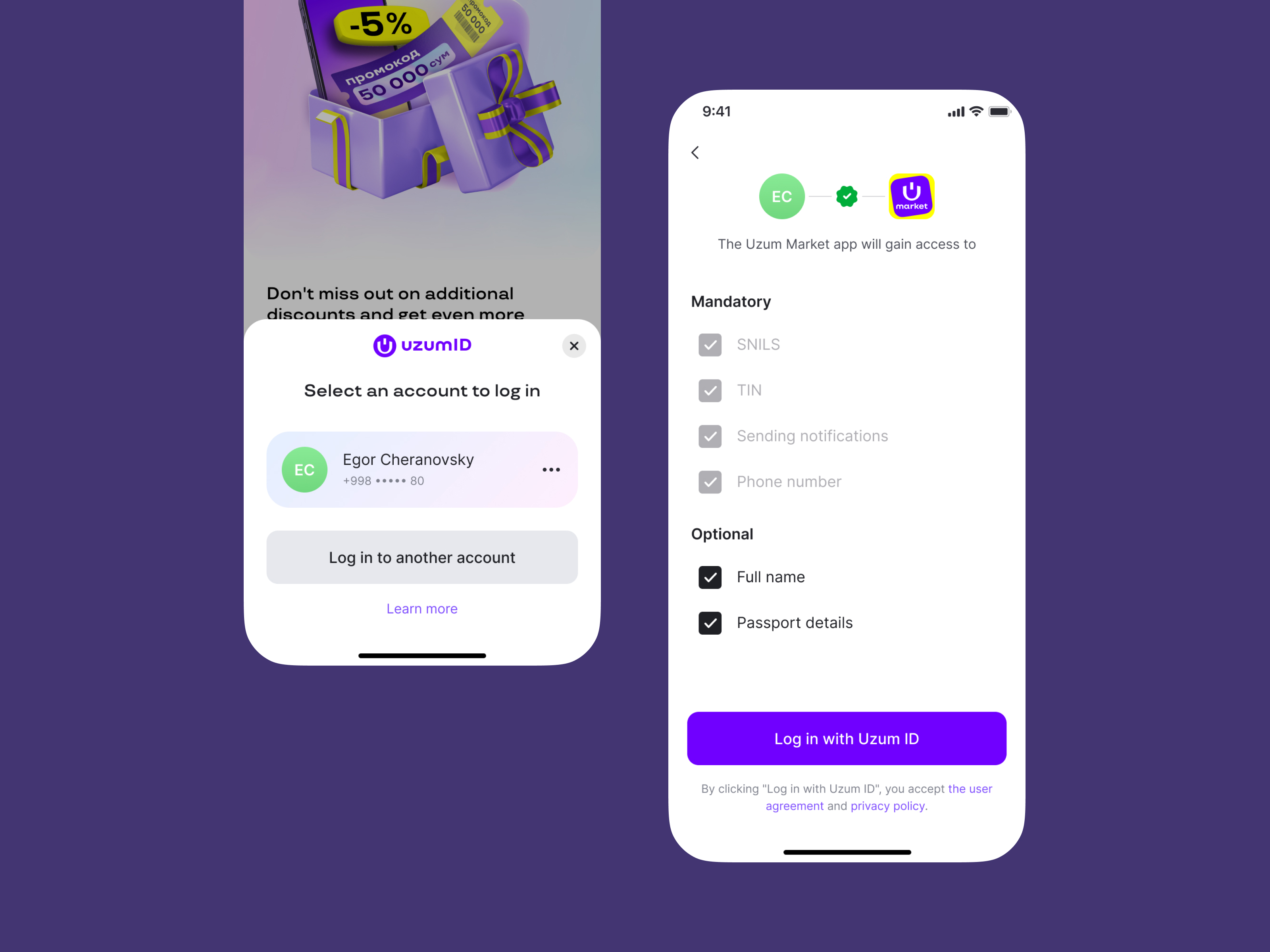 Uzum ID. Registration and Login